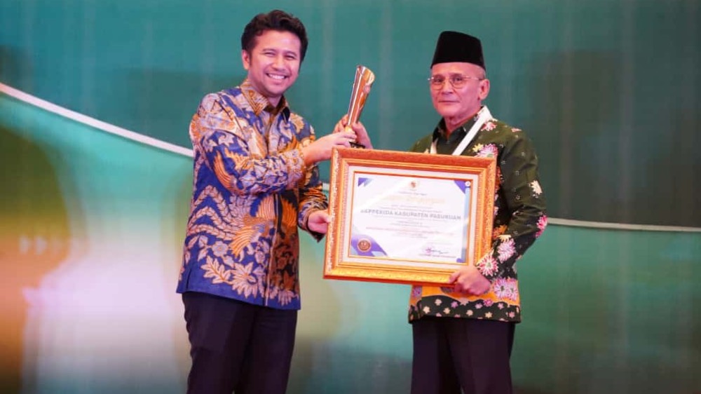 Wakil Bupati Pasuruan, Shobih Asrori, menerima piagam penghargaan dari Wakil Gubernur Jawa Timur, Emil Elistianto Dardak, dalam acara yang berlangsung di Mercure Grand Mirama Surabaya. “Alhamdulillah, ketiga penghargaan ini adalah wujud komitmen dan kerja keras Pemkab Pasuruan, dengan dukungan dan partisipasi seluruh masyarakat,” ungkap Gus Shobih.