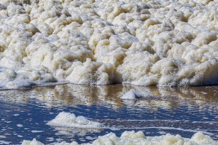 Video yang menunjukkan permukaan laut di sekitar Jembatan Suramadu dipenuhi busa putih mendadak viral di media sosial. Dalam rekaman itu terlihat gumpalan busa menyerupai busa sabun mengapung di tepian laut dan terus bergerak mengikuti arus. Fenomena tersebut menimbulkan beragam spekulasi, mulai dari dugaan pencemaran industri hingga fenomena alam di Jembatan Suramadu, Surabaya (4/12)