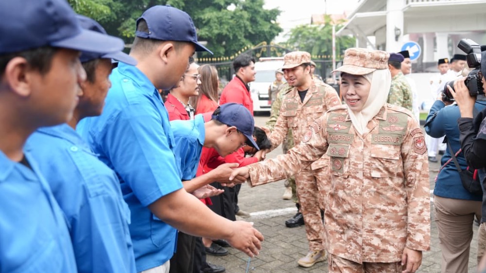 SURABAYA, 19 DESEMBER 2025— Gubernur Jawa Timur Khofifah Indar Parawansa mengajak seluruh elemen masyarakat untuk meneguhkan kembali semangat bela negara sebagai fondasi utama dalam mewujudkan Indonesia yang maju, tangguh, dan berdaulat.