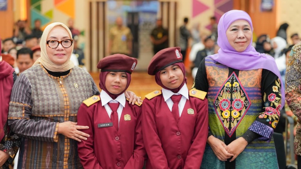 “Dari 166 titik SR se-Indonesia, terbanyak ada di Jawa Timur. Saya sampaikan kepada Pak Mensos, sudah selayaknya Ibu Gubernur mendapatkan penghargaan karena prestasi Plus Plus Plus nya di Jawa Timur,” ucap Menteri PPPA RI.