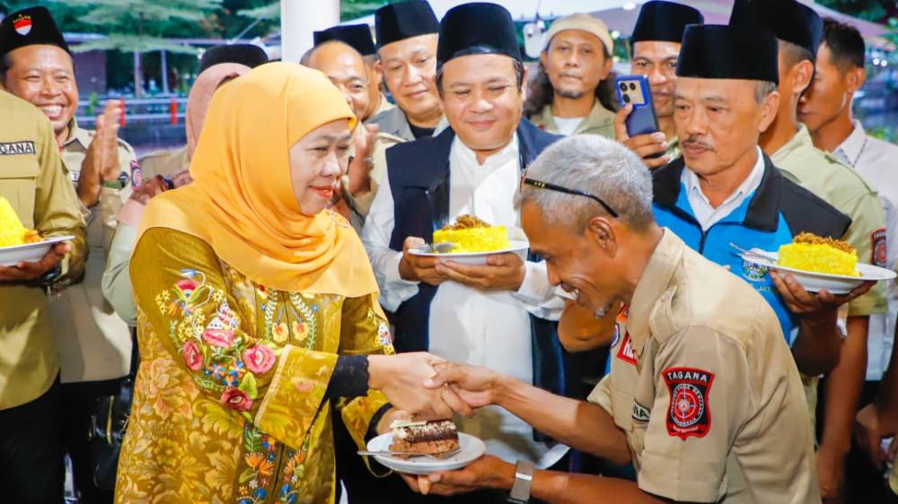 BERITAMU.IDSURABAYA, Gubernur Jawa Timur Khofifah Indar Parawansa menggelar tasyakuran HUT ke-22 Taruna Siaga Bencana (Tagana) bersama pilar sosial di Gedung Negara Grahadi, Surabaya, Selasa (24/3).